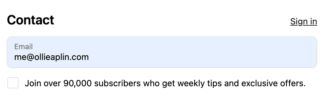 I’ve tested this hundreds of times. Asking for SMS typically reduces opt-ins by ~50%. Unless SMS is already a core channel for you, skip it here. Thinking SMS is just email but via text message is a mistake. It needs its own strategy, and now is not the time.