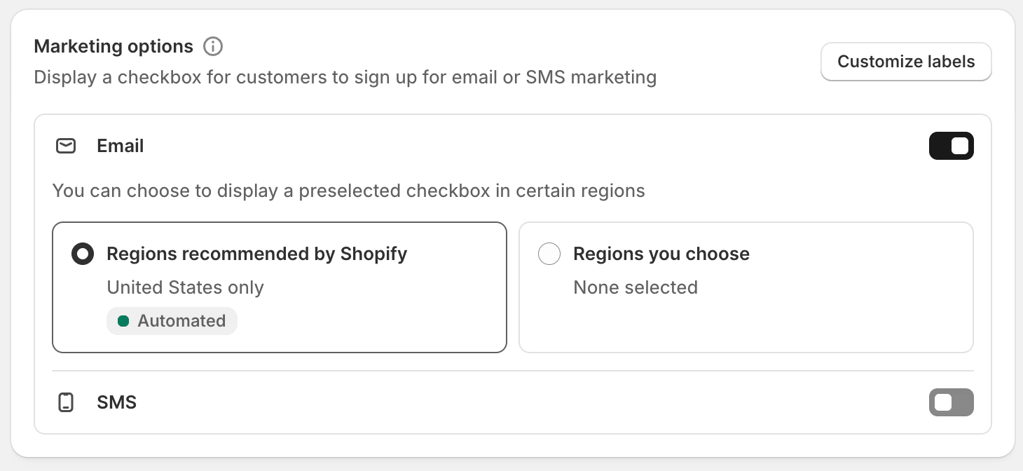 Before you touch the flow itself, go into your Shopify backend and check your marketing options. This is where most brands go wrong.